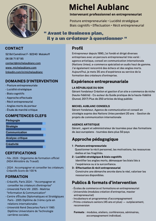 AVANT LE BUSINESS PLAN, IL Y A UN CREATEUR A QUESTIONNER